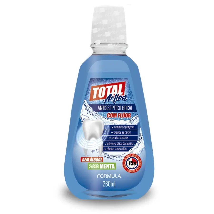 O Antisséptico Bucal Total Action, foi desenvolvido para cuidar diariamente da higiene bucal. Sua ação refrescante previne cáries, tártaro, gengivite, placa bacteriana e combate o mau hálito.