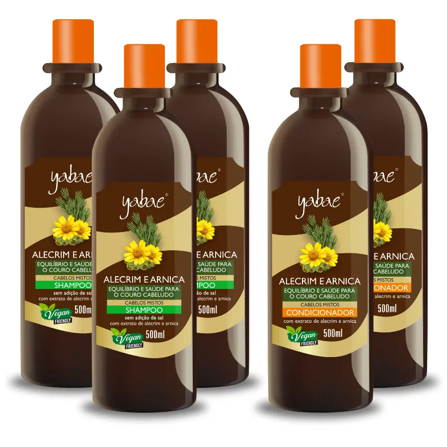 Kit 3 Shampoo Alecrim e Arnica + 2 Condicionador Alecrim e Arnica Vegano 500ml – Yabae