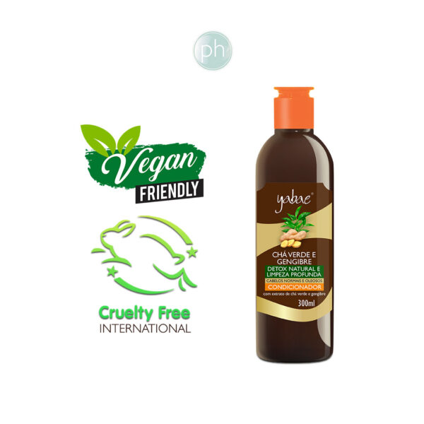 Kit Vegano Shampoo Chá Verde Com Gengibre Yabae 500ml + Condicionador Chá Verde Com Gengibre Yabae 300ml, para cabelos normais e oleosos com extrato de chá verde e gengibre detox natural confere limpeza e estimula os folículos capilares.